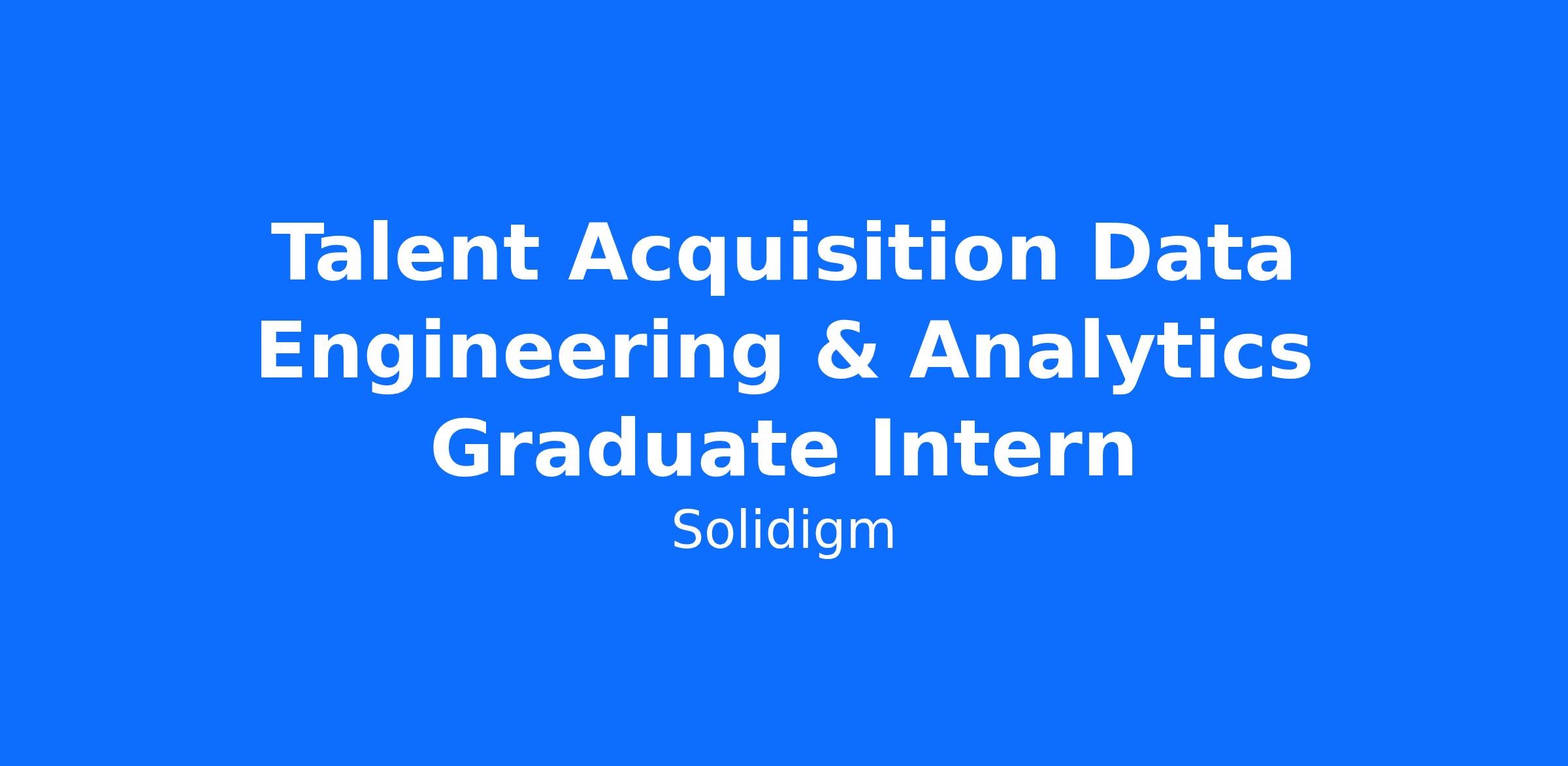 The Talent Acquisition Data Engineering & Analytics Intern will help build the foundation for Talent Acquisition reporting and analytics. This internship is designed for a technically strong graduate student interested in applying data engineering, analytics, and visualization techniques to real-world recruiting and workforce challenges.